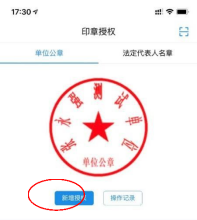 l在印章授權(quán)頁面點擊 “新增授權(quán)”。