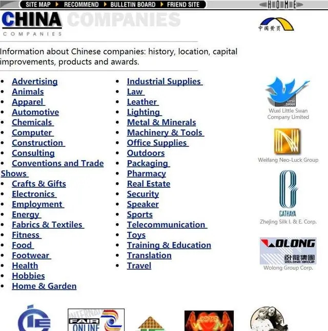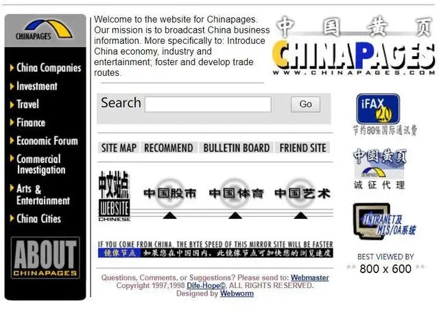 到了2000年,由于網(wǎng)頁開發(fā)技術(shù)有了一定的發(fā)展,所以這時(shí)候的“中國(guó)網(wǎng)頁”也是與時(shí)俱進(jìn)。通過下面的截圖我們看到,在左上方有一個(gè)會(huì)員登錄的入口,估計(jì)是用來給各企業(yè)自行維護(hù)信息的。而那時(shí)候很多企業(yè)都已經(jīng)開通了自己的網(wǎng)站,所以當(dāng)點(diǎn)擊企業(yè)名錄時(shí),基本上都是直接跳到企業(yè)自身的網(wǎng)站,這可以節(jié)省不少的維護(hù)成本。