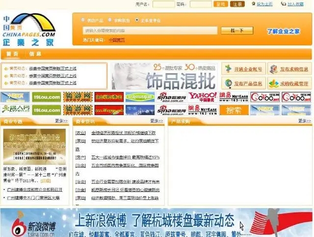 該網(wǎng)站之后還進(jìn)行過兩次較大的改版,內(nèi)容和功能也不斷地豐富,不過,最終還是避免不了終結(jié)的命運(yùn)。到了2011年最后一個(gè)版本的時(shí)候,我們看到它的設(shè)計(jì)已經(jīng)比較大氣,而且還有了發(fā)布供需信息的功能,而網(wǎng)頁使用的語言也從英文改成中文,網(wǎng)站名稱改成了“中國(guó)黃頁——企業(yè)之家”,可見,當(dāng)時(shí)網(wǎng)頁的定位已經(jīng)跟原來發(fā)生了很大的變化。