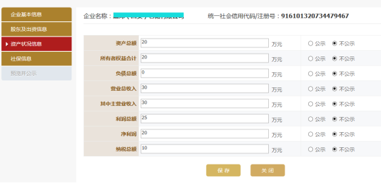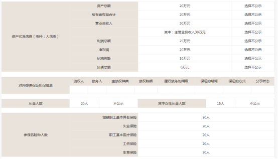 內(nèi)容可勾選公示,也可勾選不公示,填寫完成后點(diǎn)擊保存,進(jìn)入信息確認(rèn)頁(yè)面