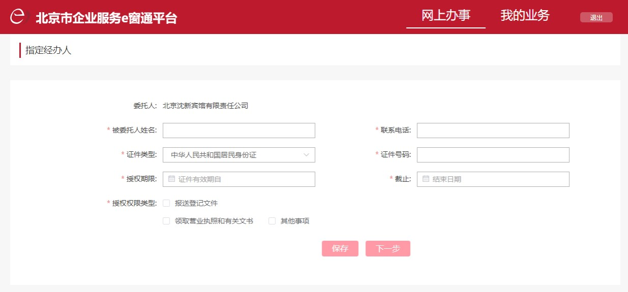 請?zhí)顚懮暾堉黧w注銷登記業(yè)務的經辦人信息,點擊【下一步】開啟主體注銷登記業(yè)務申請。