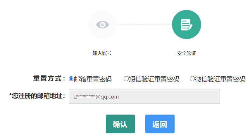 (a)郵件重置密碼(b)短信驗(yàn)證重置密碼(c)微信驗(yàn)證重置密碼,通過選擇不同的密碼重置方式來完成密碼重置。