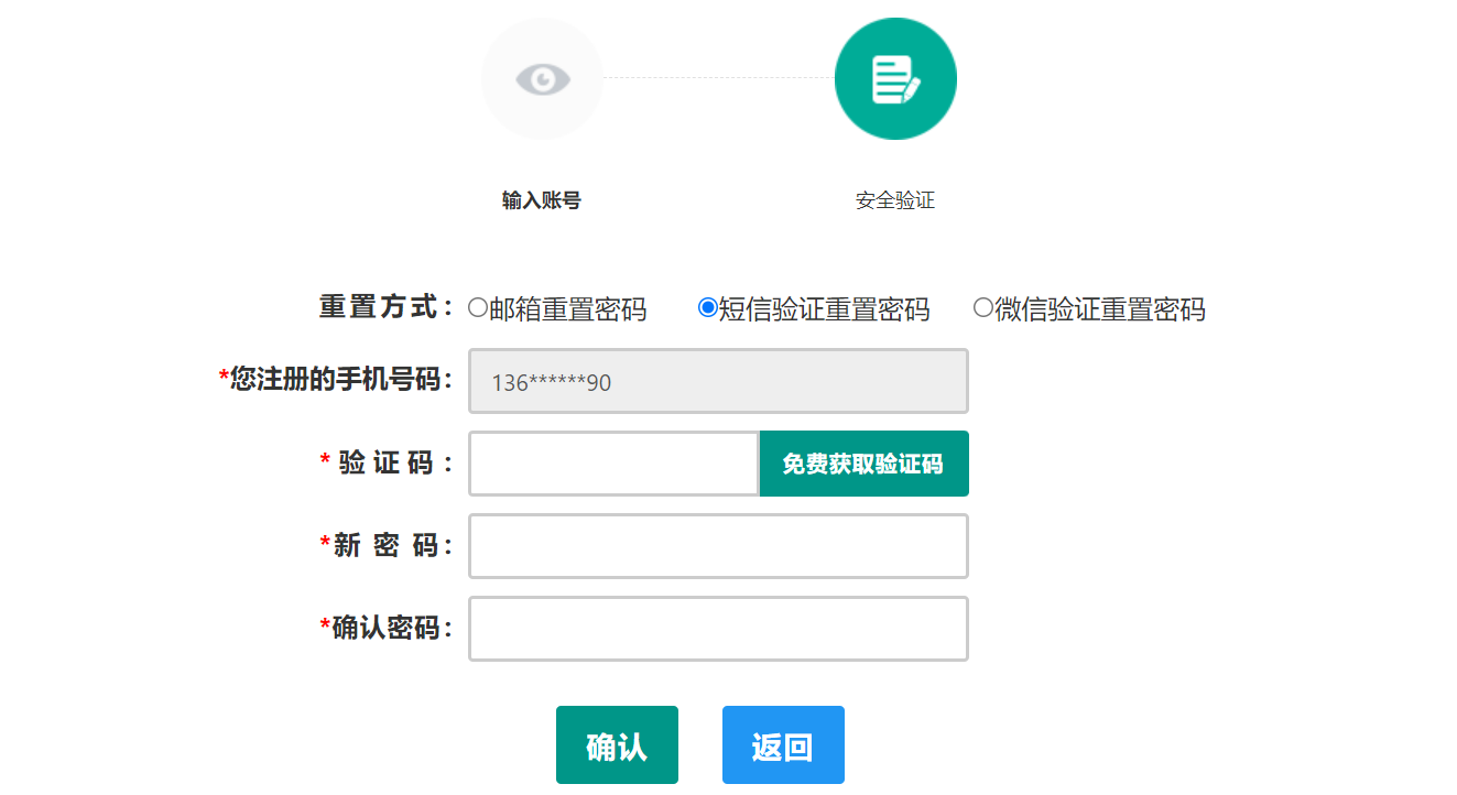 短信驗(yàn)證重置密碼:點(diǎn)擊【獲取短信驗(yàn)證碼】按鈕,輸入該賬號(hào)的注冊(cè)手機(jī)所收到的短信驗(yàn)證碼,填寫新密碼并再次確認(rèn)新密碼后點(diǎn)擊【確認(rèn)修改】按鈕。如已更換手機(jī)號(hào)或該手機(jī)號(hào)無法接收短信驗(yàn)證碼,可按網(wǎng)站首頁“常見問題2”的說明發(fā)郵件申請(qǐng)修改手機(jī)號(hào)。