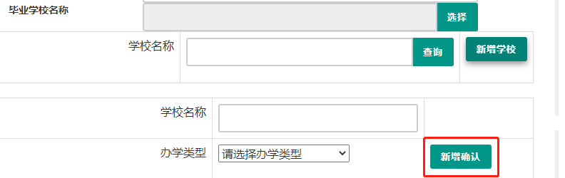 添加學(xué)歷證書時(shí),如您所畢業(yè)的學(xué)校不在可選范圍之內(nèi)(查詢不到),您可點(diǎn)擊“新增學(xué)?!卑粹o,填寫相關(guān)信息,而后點(diǎn)擊“新增確認(rèn)”即可。