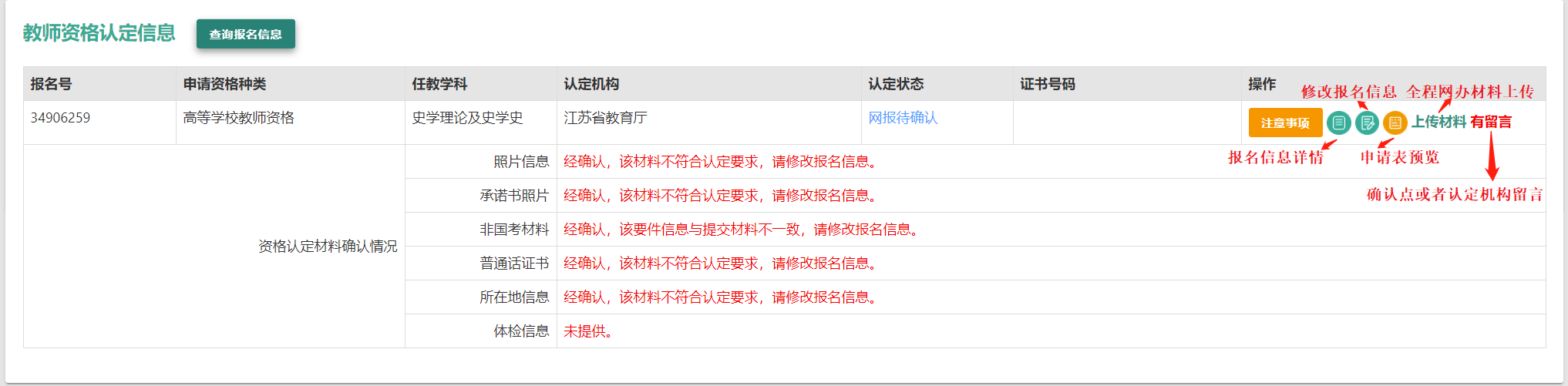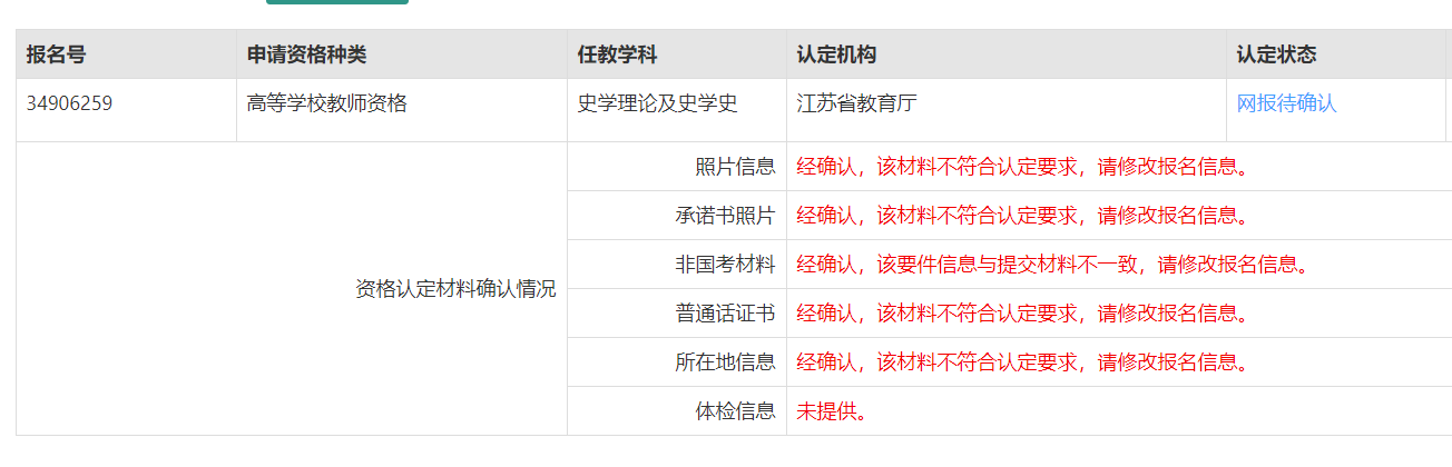 ,可以查看教師資格認(rèn)定申請(qǐng)表信息,需要檢查報(bào)名信息是否正確,個(gè)人照片和個(gè)人承諾書是否清晰完整,如有錯(cuò)誤,請(qǐng)及時(shí)按要求修改。