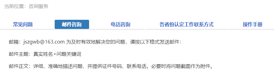 如果仍不能解決問題,請(qǐng)按“郵件咨詢”中的格式發(fā)送郵件或撥打咨詢電話,聯(lián)系網(wǎng)站工作人員解決問題。