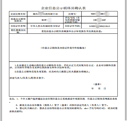 第五步:打印《企業(yè)信息公示聯(lián)絡(luò)員確認表》