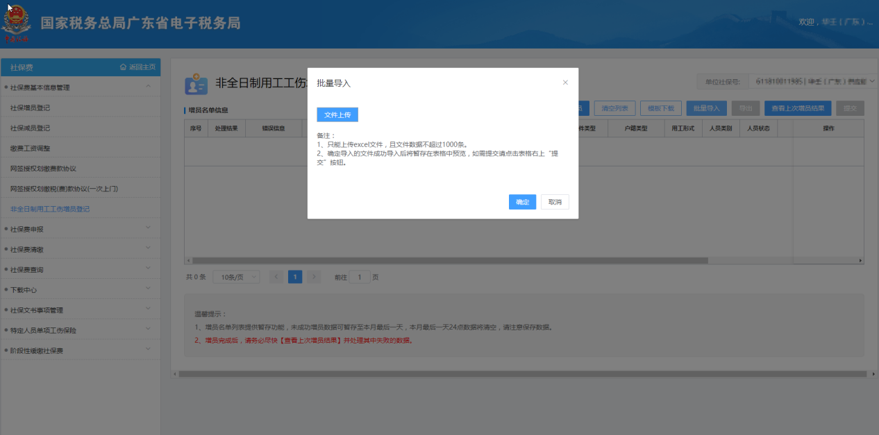 注:單次批量導(dǎo)入的增員文件,人數(shù)不可超過一千人,若增員人數(shù)超過一千人,則需要分多次重復(fù)導(dǎo)入操作;