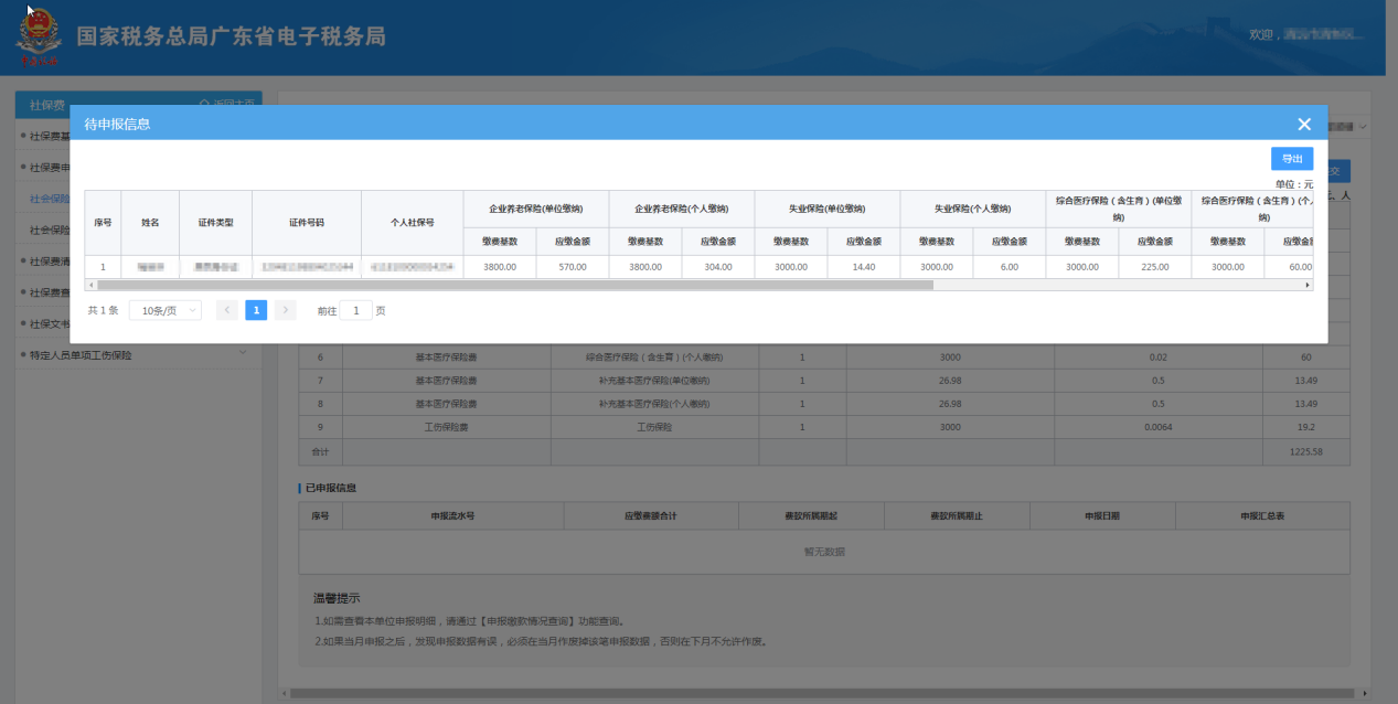 【預覽明細】:查看當前待申報社會保險費的人員明細信息;