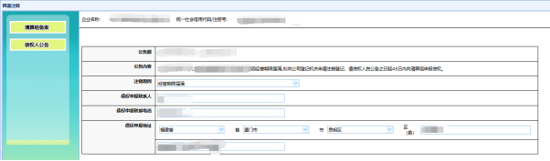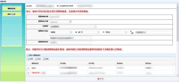 普通注銷(xiāo)的填報(bào)包括兩個(gè)模塊“清算組備案”和“債權(quán)人公告”: