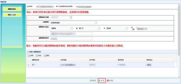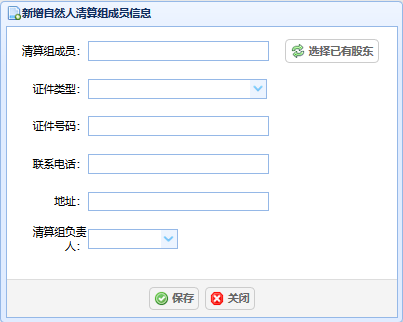 2.清算組成員錄入:用戶填寫(xiě)對(duì)應(yīng)的清算組成員信息,