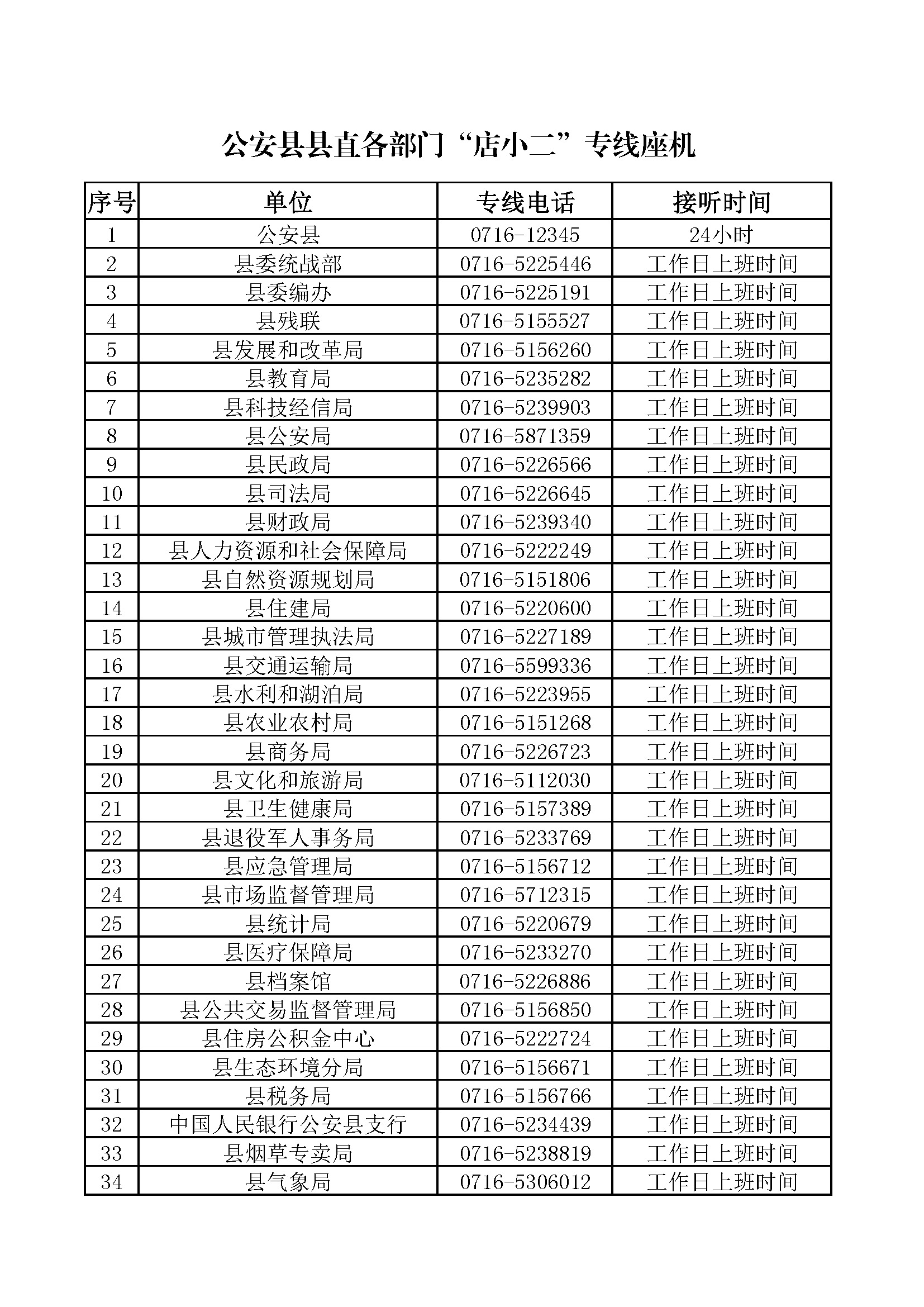 為進一步踐行“有呼必應、無事不擾”的“店小二”精神,暢通企業(yè)群眾訴求表達渠道,確保企業(yè)群眾咨詢高效辦理,提升企業(yè)群眾滿意度和獲得感,根據《省優(yōu)化營商環(huán)境領導小組關于建立“店小二”專線服務工作機制的通知》(鄂營商發(fā)〔2021〕5號)精神,公安縣各鄉(xiāng)鎮(zhèn)(街道)、縣直各部門設立了“店小二”專線,實現一個部門一個號碼統(tǒng)一為企業(yè)群眾提供服務。現將我縣“店小二”服務專線向社會集中公布如下。