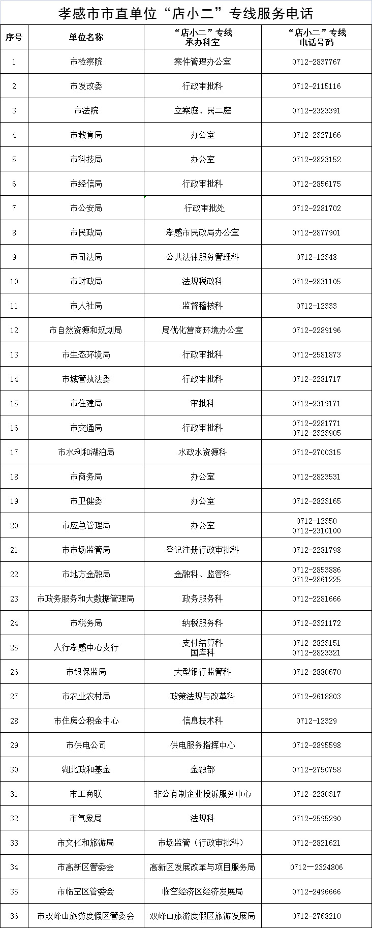 什么是“店小二”專線服務?孝感市市直單位“店小二”專線服務工作機制涉及36家部門及單位,通過本部門“店小二”專線,實現(xiàn)一個電話號碼統(tǒng)一對外為企業(yè)、群眾提供服務。