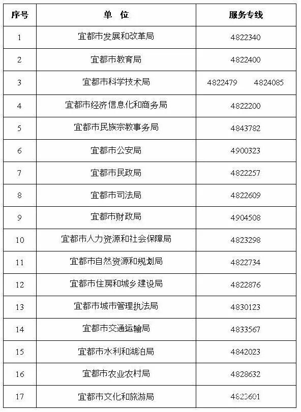 為推動(dòng)各鄉(xiāng)(鎮(zhèn))、陸城街道、松宜礦區(qū)、市直部門(mén)進(jìn)一步踐行“有呼必應(yīng)、無(wú)事不擾”的“店小二”精神,暢通企業(yè)群眾訴求表達(dá)渠道,提升企業(yè)群眾滿意度和獲得感,現(xiàn)將宜都各鄉(xiāng)(鎮(zhèn))、陸城街道、松宜礦區(qū)、市直部門(mén)設(shè)立的“店小二”服務(wù)專(zhuān)線向社會(huì)統(tǒng)一公布。