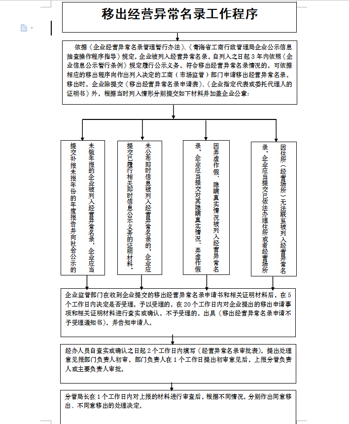 ●被列入經(jīng)營異常名錄是什么原因 有四種情形: 1、因未依照《企業(yè)信息公示暫行條例》第八條規(guī)定的期限公示年度報告的;列入經(jīng)營異常名錄。 2、因通過登記的住所或者經(jīng)營場所無法聯(lián)系的;列入經(jīng)營。。。
