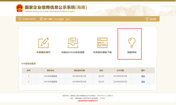第一步:登陸海南企業(yè)信用信息公示系統(tǒng)首頁(yè)(入口地址:http://www.51gecaochuan.cn/shop/9697.html)。填報(bào)年報(bào)公示信息前,請(qǐng)先閱讀“在線填報(bào)須知”。