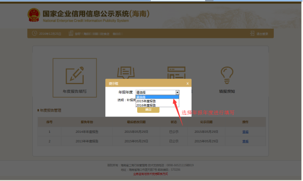 第二步:選擇填報(bào)年度。如往年未填報(bào),須先補(bǔ)報(bào),再報(bào)送2016年度的年報(bào)。