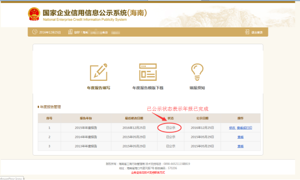 第九步:年報(bào)公示填報(bào)并提交成功。