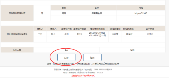 第八步:預(yù)覽打印與提交并公示。企業(yè)確認(rèn)信息無(wú)誤,可提交并公示年報(bào)信息。