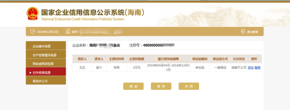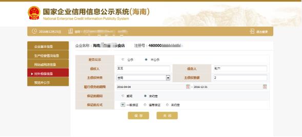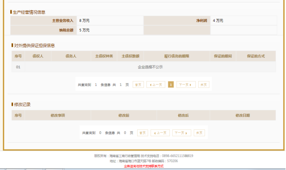 第七步:填寫(xiě)“對(duì)外提供保證擔(dān)保信息”。對(duì)外提供保證擔(dān)保信息是指截止到年報(bào)年度有效的擔(dān)保信息,該信息為非強(qiáng)制性公示的事項(xiàng),企業(yè)可自行選擇是否向社會(huì)公示。如企業(yè)當(dāng)年度無(wú)對(duì)外提供保證擔(dān)保信息,則無(wú)需填報(bào),直接點(diǎn)擊“預(yù)覽并保存”進(jìn)入下一頁(yè)面。