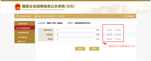 第五步:填寫(xiě)生產(chǎn)經(jīng)營(yíng)情況。生產(chǎn)經(jīng)營(yíng)情況是非強(qiáng)制性公示的事項(xiàng),企業(yè)自行選擇是否向社會(huì)公示。