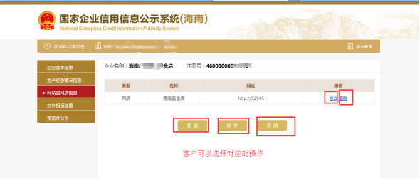 第六步:填寫(xiě)“網(wǎng)站或網(wǎng)店信息”,可添加多條網(wǎng)站或網(wǎng)店信息,也可修改或刪除信息。