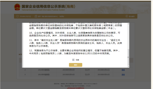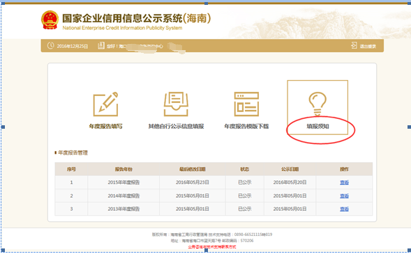 第一步:登陸海南企業(yè)信用信息公示系統(tǒng)首頁(入口地址:http://www.51gecaochuan.cn/shop/9697.html)。填報年報公示信息前,請先閱讀“在線填報須知”。