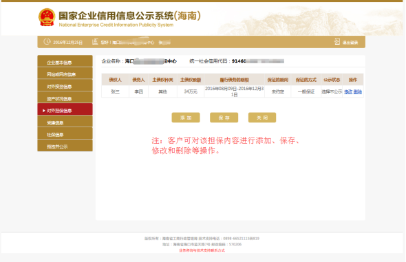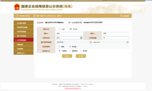 第八步:填寫“對外提供保證擔保信息”。對外提供保證擔保信息是指截止到年報年度有效的擔保信息,該信息為非強制性公示的事項,企業(yè)可自行選擇是否向社會公示。如企業(yè)當年度無對外提供保證擔保信息,則無需填報,直接到黨建信息填寫。