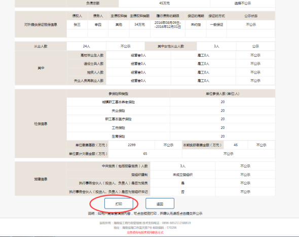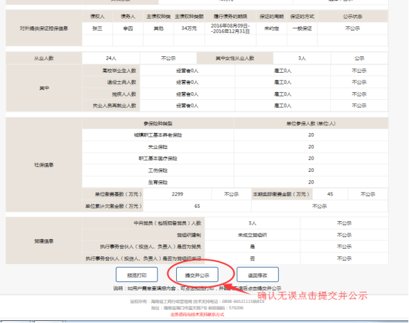 第十一步:預覽打印與提交并公示。企業(yè)確認信息無誤,可提交并公示年報信息。