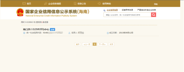 第二步:點擊企業(yè)名稱,點擊企業(yè)名稱,打開企業(yè)信息頁面,鼠標往下拉,即可看到企業(yè)年報信息。