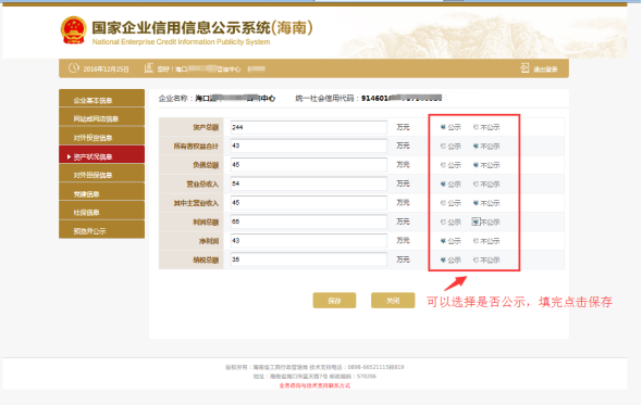 第七步:填寫“資產(chǎn)狀況信息”。資產(chǎn)狀況信息是非強制性公示的事項,企業(yè)自行選擇是否向社會公示。