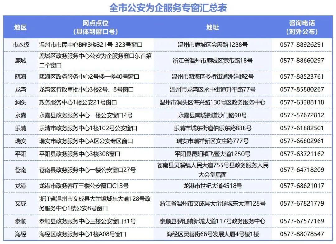 13個縣級公安行政審批(政務服務)窗口全部同步設置為企服務專窗,并指導派出所配備為企服務專員,多維度收集與響應企業(yè)辦事需求,提供專人負責、限時辦結(jié)的優(yōu)質(zhì)服務,確保企業(yè)業(yè)務“一個口子”受理、“一站式”辦理。