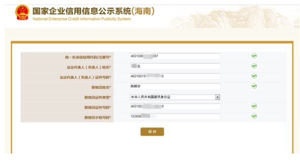 2.2驗(yàn)證個(gè)體信息,信息填對(duì)右手邊成綠色,點(diǎn)擊保存即可