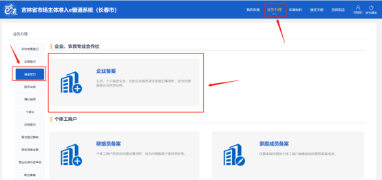 1. 企業(yè)登錄e窗通系統(tǒng)后,點(diǎn)擊業(yè)務(wù)辦理菜單后,點(diǎn)擊右側(cè)市場主體變更,如下圖: