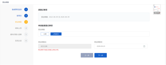 7. 營業(yè)期限,填寫變更期限信息,點(diǎn)擊【下一步】