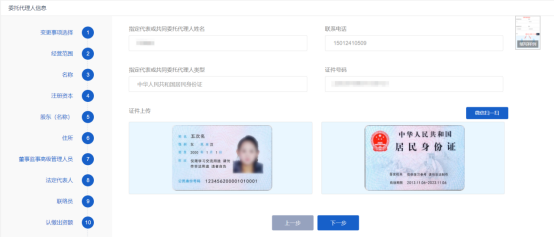 9. 填寫委托代理人信息,點(diǎn)擊【下一步】