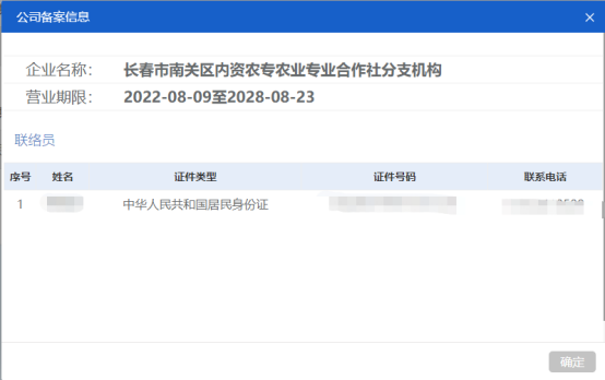 10. 顯示備案信息,核對無誤后,點(diǎn)擊【確定】
