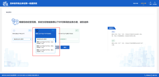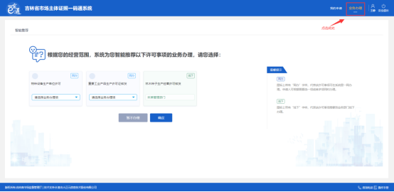 選擇要辦理的許可事項(xiàng)和業(yè)務(wù)辦理項(xiàng),如下圖: