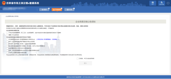 7、 勾選全部選項(xiàng)后,點(diǎn)擊“進(jìn)入”,簡(jiǎn)易注銷公告申請(qǐng)頁(yè)面,如圖: