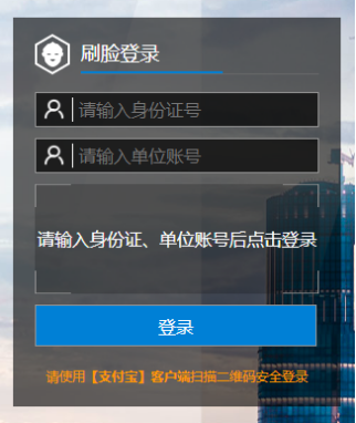 錄入身份證號碼、單位賬號后點擊【登錄】,頁面會顯示二維碼,使用【支付寶】客戶端掃描二維碼安全登錄進入首頁