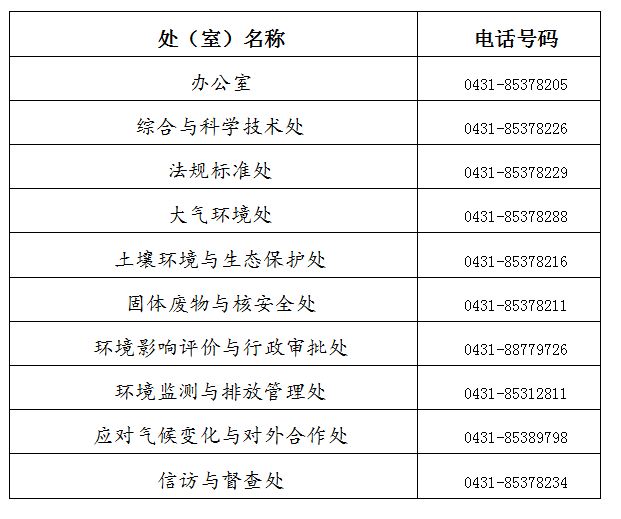 長(zhǎng)春市生態(tài)環(huán)境局機(jī)關(guān)主要處室公開電話