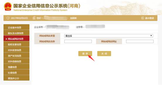 第九步:填寫基本信息。需要填報的通信地址、郵政編碼、聯(lián)系電話、電子郵箱、存續(xù)狀態(tài)、網(wǎng)址、網(wǎng)站信息均為報送時的信息,其余信息為所報告年度12月31日的信息。如果有網(wǎng)站或網(wǎng)店就點“是否有網(wǎng)站或網(wǎng)店”后面的“是”字前的圓點,如果沒有網(wǎng)站或網(wǎng)店就點“否”字前的圓點。填寫完后點“保存”。