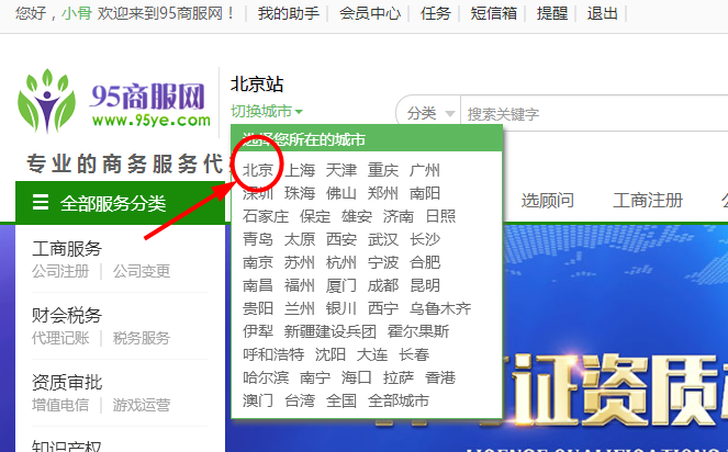 第四步:進入后選擇“工商服務”【如下圖】