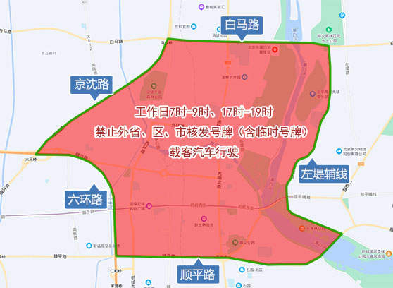 順義區(qū)限行范圍:沿白馬路(不含)至左堤輔線(不含)至順平路(不含)至東六環(huán)路(不含)至北六環(huán)路(不含)至京沈路(不含)區(qū)域以內(nèi)道路。