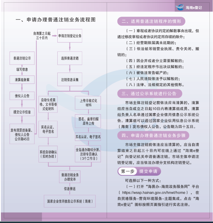 以下是基于海南市場主體登記平臺(海南e登記)的公司注銷操作指南,整合了普通注銷與簡易注銷的流程、適用條件及注意事項,結合2025年最新政策整理: