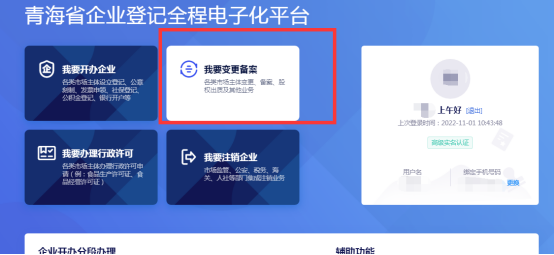 登陸平臺(tái)后,點(diǎn)擊“我要變更備案”可進(jìn)行營(yíng)業(yè)執(zhí)照變更申請(qǐng)。