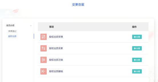 登陸平臺(tái)后,點(diǎn)擊“我要變更備案”可進(jìn)行股權(quán)出質(zhì)業(yè)務(wù)申報(bào)。