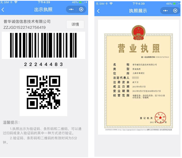 通過電子營業(yè)執(zhí)照小程序,企業(yè)可以實現(xiàn)電子營業(yè)執(zhí)照的出示,電子營業(yè) 執(zhí)照真?zhèn)涡则炞C等功能。