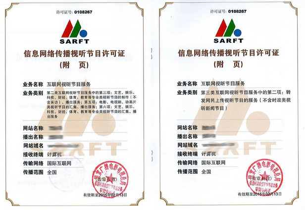 從事信息網(wǎng)絡傳播視聽節(jié)目業(yè)務,應取得《信息網(wǎng)絡傳播視聽節(jié)目許可證》。《信息網(wǎng)絡傳播視聽節(jié)目許可證》由廣電總局按照信息網(wǎng)絡傳播視聽節(jié)目的業(yè)務類別、接收終端、傳輸網(wǎng)絡等項目分類核發(fā)。業(yè)務類別分為播放自辦。。。