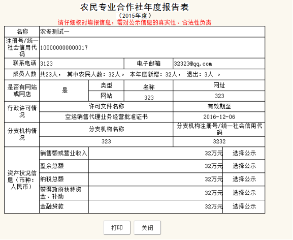 第十五步:點擊預(yù)覽打印,注意:請仔細(xì)核對填報信息,需對公示信息的真實性、合法性負(fù)責(zé)。點擊打印即可打印,無需打印點擊關(guān)閉。